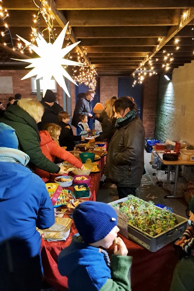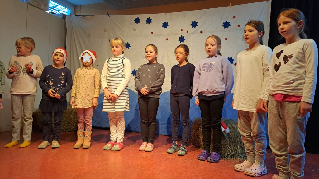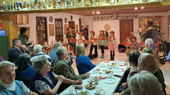 Diese Vorfreude auf das Fest wollten wir mit anderen teilen. So freuten wir uns auch in diesem Jahr über die Einladung der Ortsräte aus Bischhausen, Bremke und Ischenrode zu den Seniorenfeiern. Wir führten ein Krippenspiel nach der wunderschönen Erzählung „Weihnachten im Stall“ von Astrid Lindgren auf. Dazu spielten Kinder Flöte und die Bläsergruppe bot weihnachtliche Lieder dar. Besonders schön war, dass beim Singen alle kräftig einstimmten.