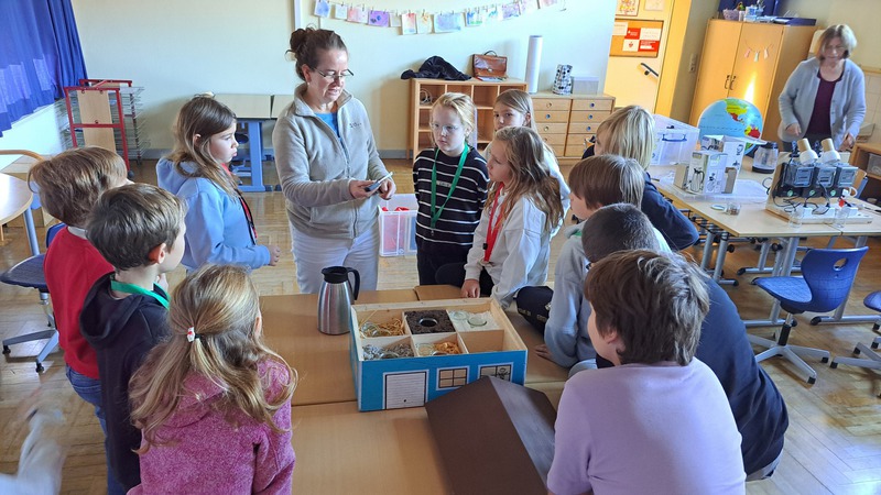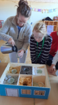 Wir durften verschiedene Getreidesorten finden, wie Triticale, Weizen und Roggen. Zum Schluss durften wir erraten, wie viele Ähren in einer Garbe sind. Insgesamt waren es 400 pro Garbe.